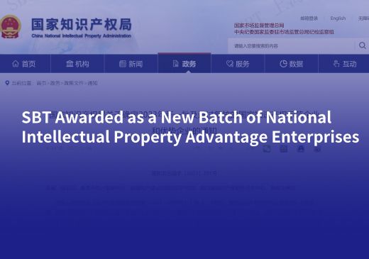 SBT Awarded as a New Batch of National Intellectual Property Advantage EnterprisesOn December 6, 2023, the National Intellectual Property Administrati
