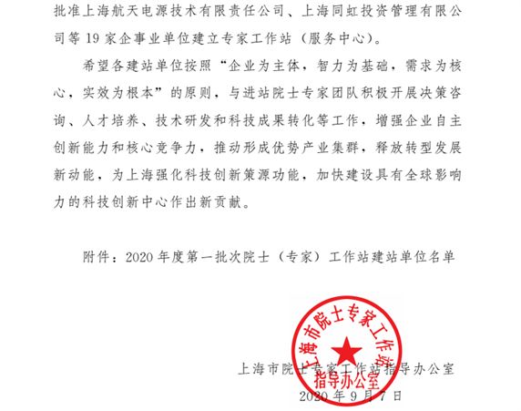 为增强自主研发创新能力和核心竞争力,促进企业可持续稳定发展,2020年尊龙凯时向上海市院士专家工作站指导办公室提出院士专家工作站递交建站申请,并从众多申报企业中脱颖而出,成功获批准建立“专家工作站”,可喜可贺!!!