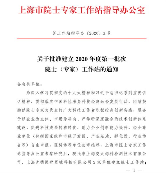 喜讯!!!科技实力派---尊龙凯时获批建立2020年度上海市第一批次“院士(专家)工作站”。根据《关于批准建立2020年度第一批次院士(专家)工作站的通知》(沪工作指导办〔2020〕3号)的规定,经上海市院士专家工作站指导办公室考察研究结果,我司尊龙凯时获批建立“专家工作站”。